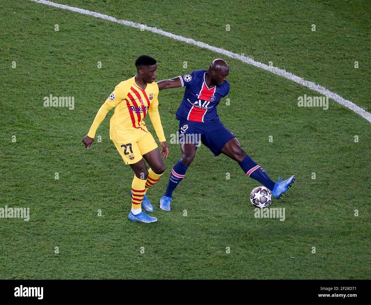 Ilaix Moriba Of Barcelona Danilo Pereira Of Psg During The Uefa Champions League Round Of 16 2nd Leg Football Match Between Paris Saint Germain Psg And Fc Barcelona Barca On March 10 2021